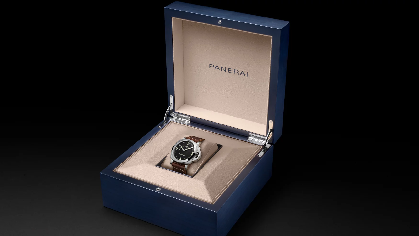 Panerai has paired the watch with a dark brown “vintage” calf leather strap with prominent contrast stitching. The brown leather warms up the otherwise monochrome package and should take on character over time. Recognising that some owners will actually get this watch wet, Panerai also includes a black rubber strap in the box, allowing an easy switch between desk‑diver mode and more practical water use. The presentation box itself is a wooden affair reserved for limited editions.
